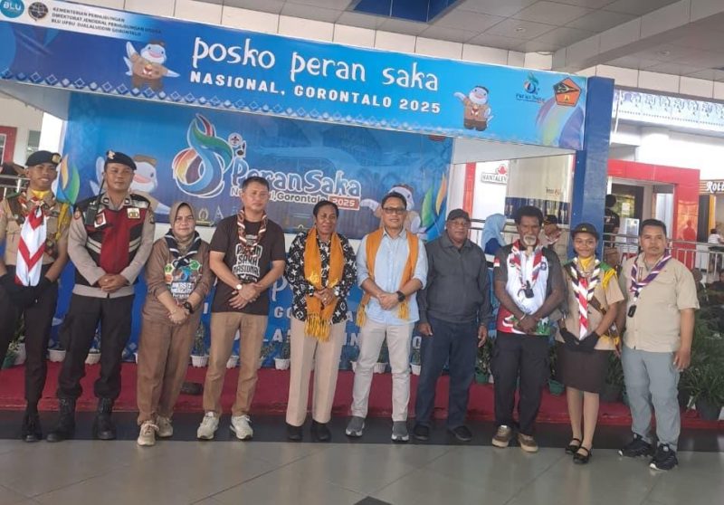 LIMBOTO, — Kepala Dinas Penanaman Modal dan Pelayanan Terpadu Satu Pintu (PTSP) Kabupaten Gorontalo, Rachmat Mohamad, menyambut langsung kedatangan Kontingen Perkemahan Antar Satuan Karya (Peran Saka) Nasional 2025 asal Papua Barat Daya, di Bandara Djalaluddin Gorontalo, Minggu (2/11/2025).