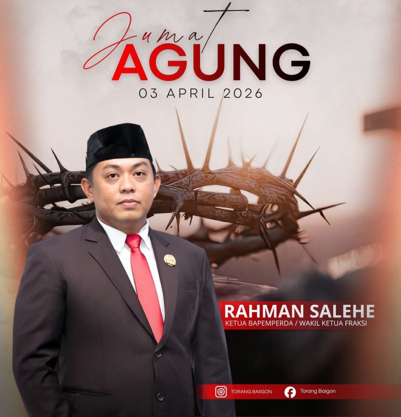 IntaNews.id BOLTIM— Peringatan Jumat Agung dan Hari Raya Paskah 2026 menjadi momentum reflektif yang sarat makna spiritual sekaligus sosial bagi masyarakat Indonesia. Dalam suasana penuh kekhusyukan tersebut, Anggota DPRD Kabupaten Bolaang Mongondow Timur dari Partai PDI Perjuangan, Rahman Salehe, menyampaikan ucapan sekaligus pesan kebangsaan yang menekankan pentingnya nilai pengorbanan, kasih, dan kebangkitan dalam kehidupan bermasyarakat.