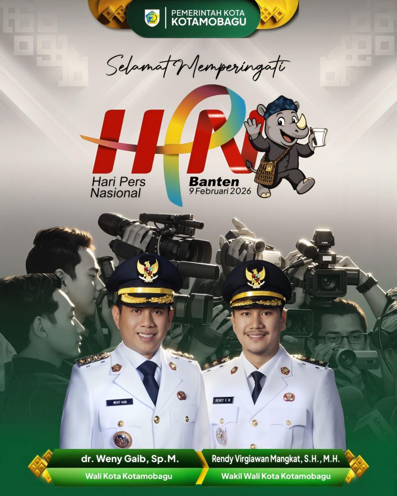 IntaiNews.id KOTAMOBAGU – Wali Kota Kotamobagu bersama jajaran Pemerintah Kota Kotamobagu menyampaikan ucapan Selamat Hari Pers Nasional (HPN) 2026 kepada seluruh insan pers di Indonesia. Peringatan Hari Pers Nasional yang jatuh setiap 9 Februari ini menjadi momen penting untuk mengapresiasi peran media dalam membangun demokrasi, menegakkan kebenaran, dan mencerdaskan masyarakat.
