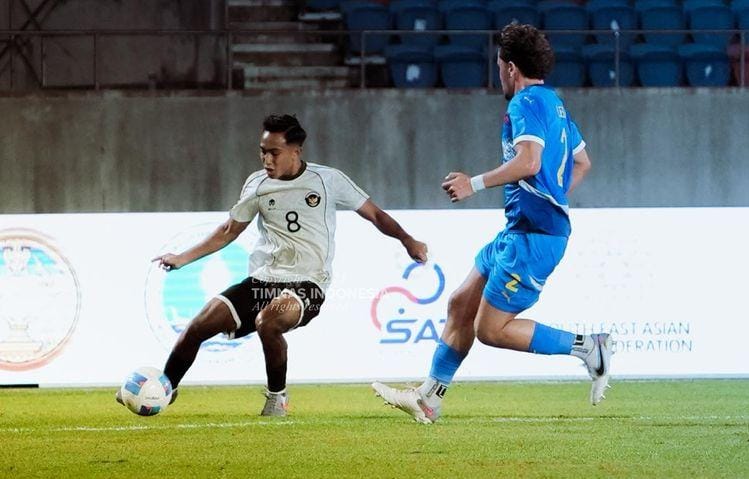BOLA— Timnas U-22 Indonesia harus menerima hasil pahit pada laga pembuka Grup C SEA Games 2025. Skuad Garuda Muda takluk 0-1 dari Filipina di Stadion 700th Anniversary, Chiang Mai, Senin malam. Satu-satunya gol dalam pertandingan ini dicetak oleh Out Banatao di masa tambahan waktu babak pertama, tepatnya menit 45+1.