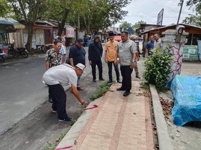 KISARAN, INTAINEWS.ID — Camat Kota Kisaran Timur, A. Syaiful P. Pasaribu, S.AP., MM, melakukan penandaan nomor pada lokasi yang akan digunakan sebagai relokasi sementara bagi pedagang di Jalan Budi Utomo dan Jalan Sultan Syahrir, Kelurahan Mutiara.