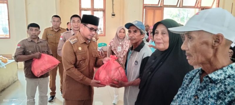 Penyaluran bansos ini diserahkan langsung Bupati Bolmut,Sirajudin Lasena,Dikantor Camat Bolangitan Timur,Desa Bohabak,Senin (17/11/ 2025)