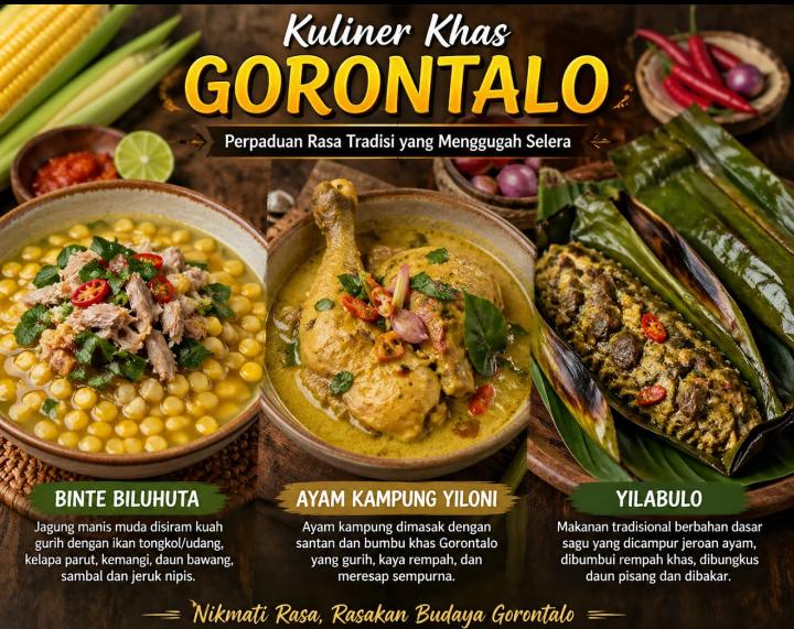 Salah satu yang paling populer adalah binte biluhuta atau milu siram, yakni olahan jagung manis muda yang disajikan dengan kuah gurih, dipadukan dengan ikan tongkol atau udang, kelapa parut, serta aneka rempah dan daun aromatik. Cita rasanya semakin nikmat dengan sambal dan perasan jeruk nipis.